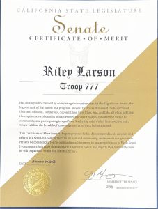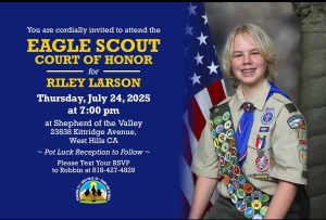 On July 24, 2025, Troop 777 in West Hills celebrated it’s first Eagle Scout with a special Eagle Scout Court of Honor for Riley Larson.